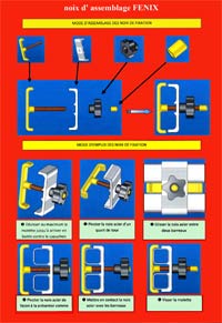 La liaison des éléments se fait par des manchons introduits dans les montants pour le guidage et le maintien des 2 éléménts gràce à deux noix de liaison et fixation